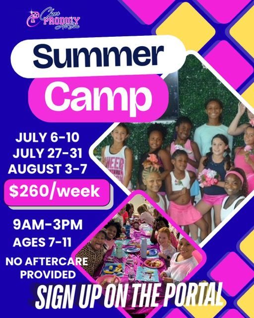 Get ready for a week full of sparkle, spirit, and serious FUN at Cheer Prodigy Camp! This is more than just a camp — it’s an experience designed to build confident, strong, and fearless athletes while making unforgettable memories 💎